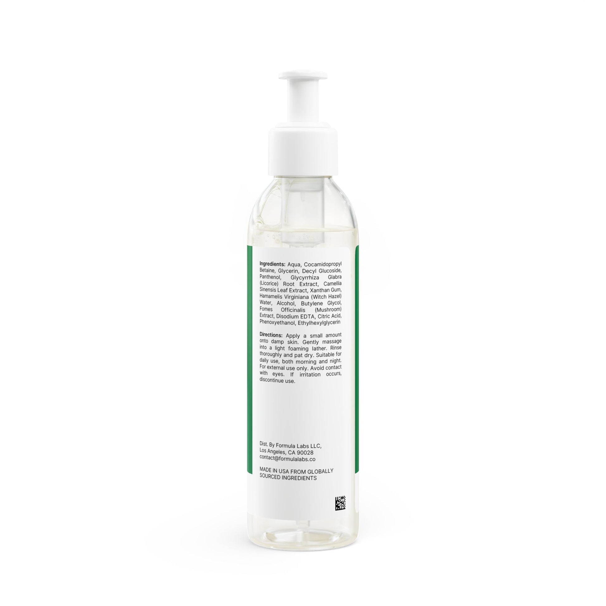 Aqua, Cocamidopropyl Betaine, Glycerin, Decyl Glucoside, Panthenol, Glycyrrhiza Glabra (Licorice) Root Extract, Camellia Sinensis Leaf Extract, Xanthan Gum, Hamamelis Virginiana (Witch Hazel) Water, Alcohol, Butylene Glycol, Fomes Officinalis (Mushroom) Extract, Disodium EDTA, Citric Acid, Phenoxyethanol, Ethylhexylglycerin.