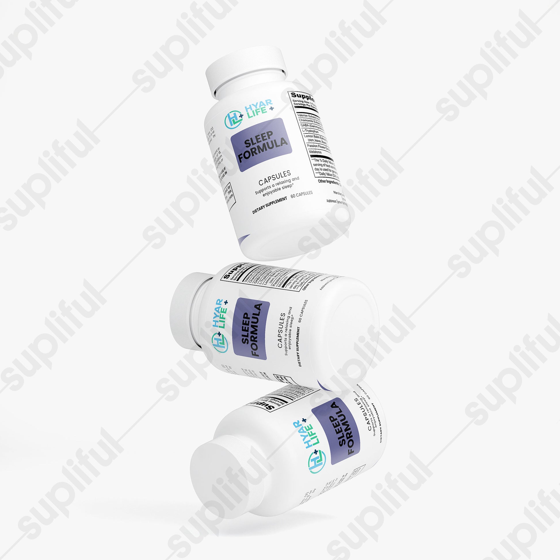 Ingredients: Valerian Extract (root); Chamomile Extract (flower); GABA (Gamma-Aminobutyric Acid); L-Tryptophan; Lemon Balm Extract (Melissa officinalis) (stem, leaves, flower); Passion Flower Extract (stem, leaves, flower); Melatonin